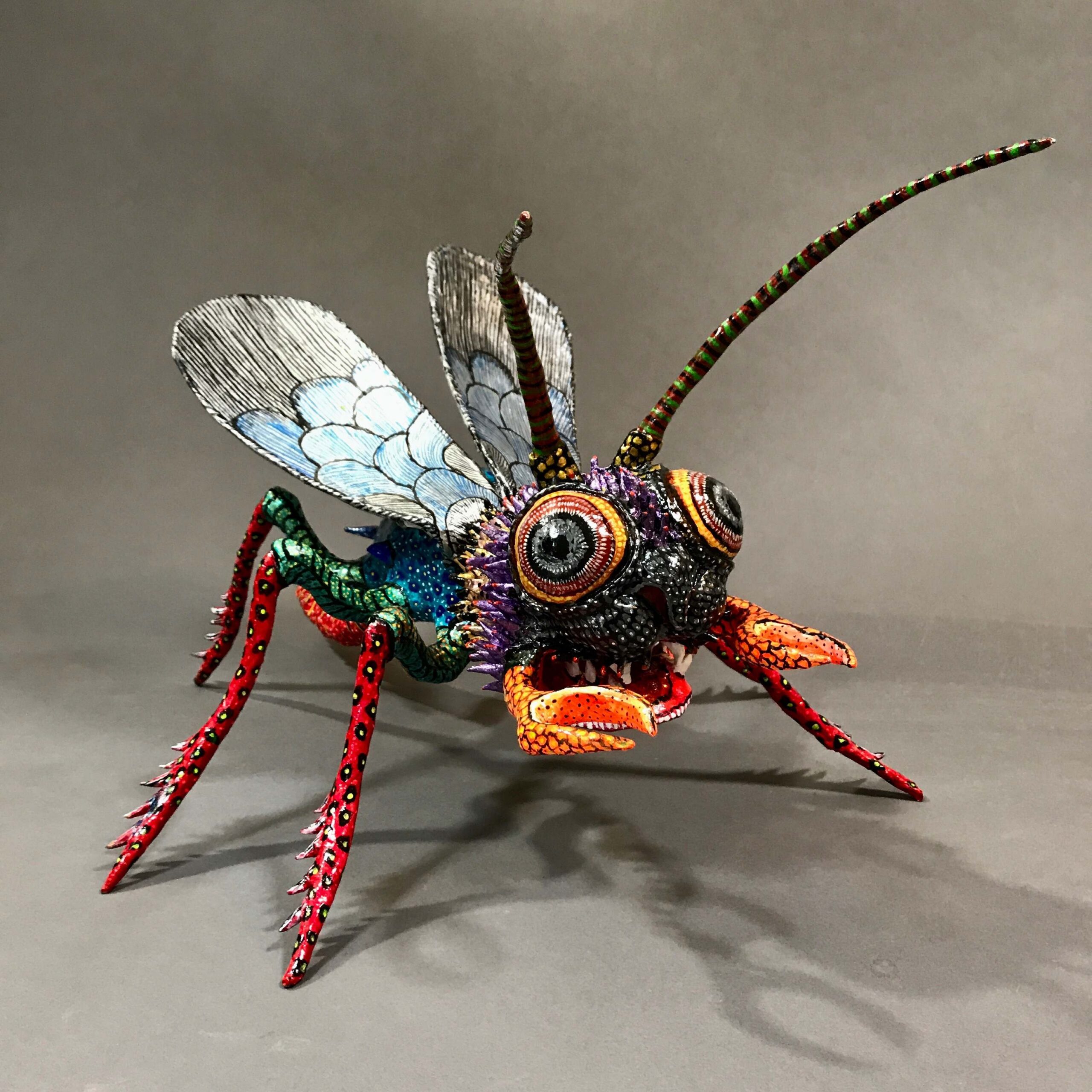 Linares’s alebrijes inspired Oaxacan woodcarvers, who began creating these fanciful animals in wood in a wide variety of shapes and sizes. Now, virtually all Oaxacan woodcarvers create some form of alibrijes, along with other more recognizable animals of all sizes. (The Linares family is still creating alibrijes out of paper maché.)