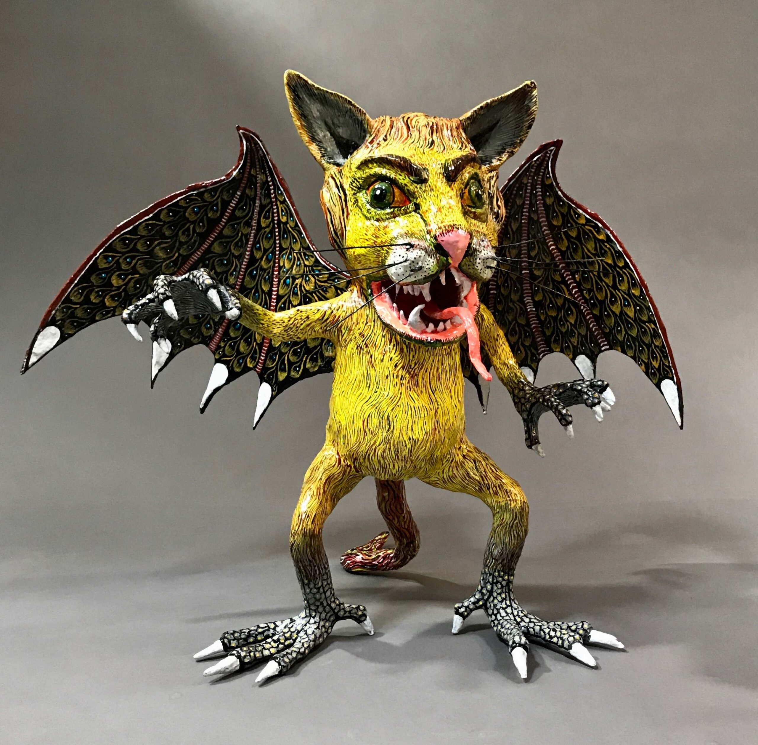 In 1936, the Mexico City paper maché artist, Pedro Linares began creating fanciful creatures, which he called called “alebrijes.” Linares coined the term alebrije, which came to him in a dream in which fanciful creatures were dancing in the forest and calling out the word “alebrije,” (a made-up word).