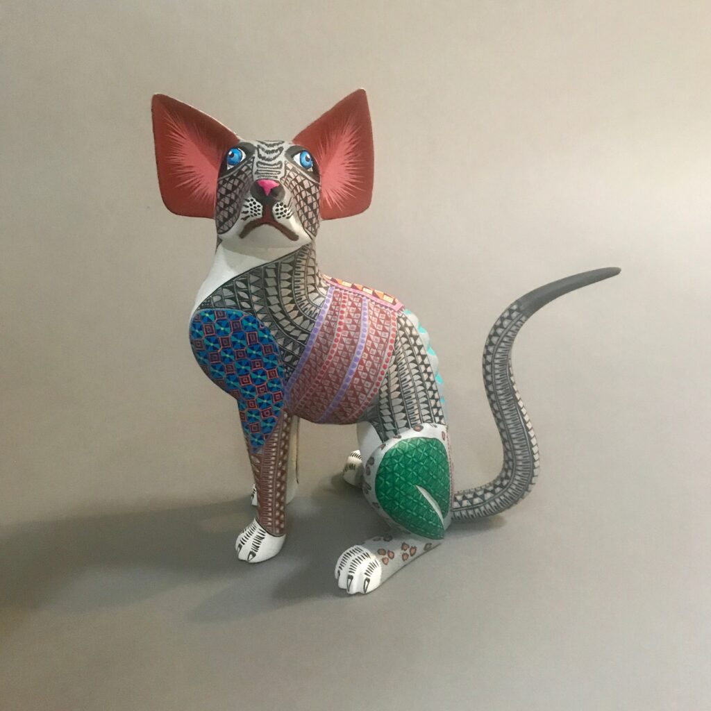 Small wooden toys and masks were commonly carved before that time, but in the early 50s, Manuel Jiménez Ramírez pioneered more elaborate and colorful animals and encouraged other wood carvers to do the same. It was not until the 1980s that the work became enormously popular.